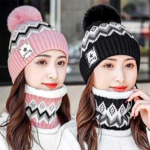 편한 패턴 비니 세트 방울 넥워머 WFFO9GY