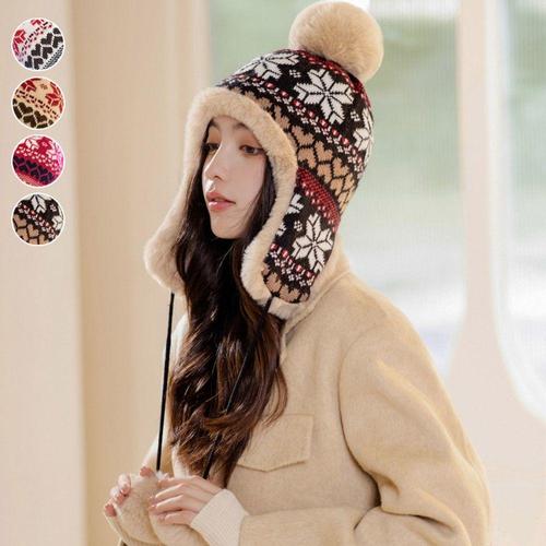 눈꽃무늬 방한모자 털안감 따뜻한 방울비니 귀달이 WFFNQMS