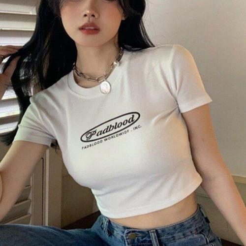 F006794 반팔티셔츠 배꼽티 스판 크롭 슬림핏 크롭티