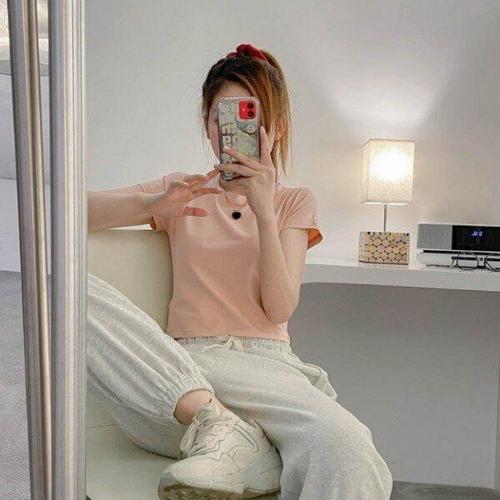 여성 여름 크롭티 배꼽티 캐주얼 티셔츠 큐티탑