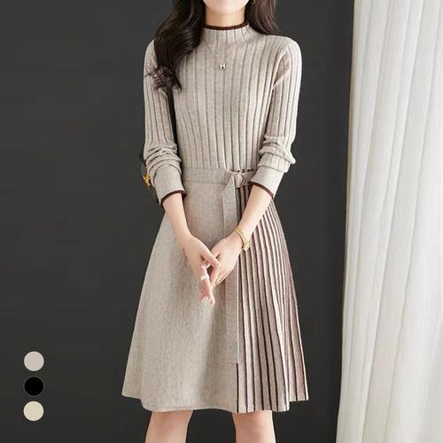 클라셰 니트A라인배색원피스+벨트SET_B5F0213