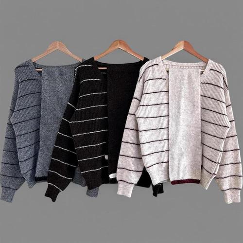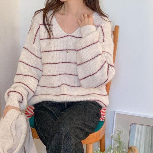 [보니스팍스]배색 라인 숄 세트 V넥 니트 (XQ1KP006M0)
