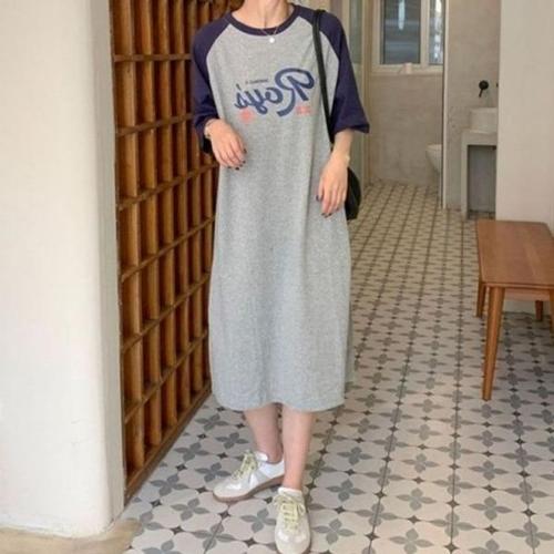 [엄지척]프린팅 루즈핏 S35175 배색치마 롱원피스 반팔원피스_19913309_667501