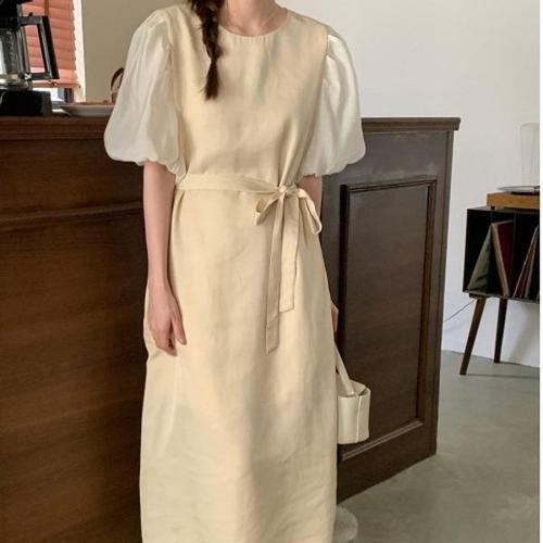 [엄지척]블라우스레이어드느낌 볼륨소매 배색 심플 롱원피스_19871310_667501