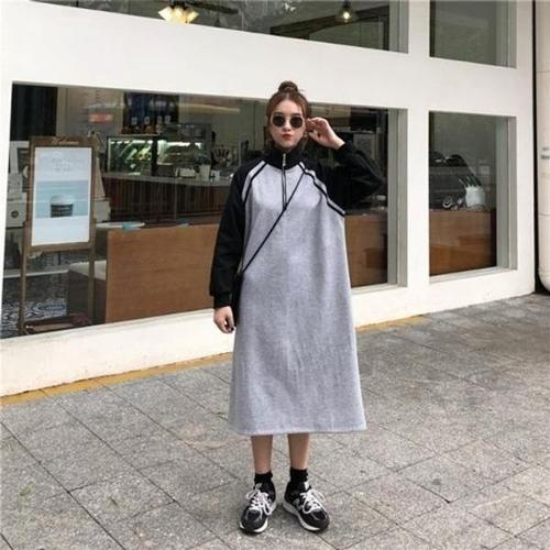 [엄지척]F4290 소매배색 앞지퍼 하이넥 롱원피스 원피스_19912766_667501