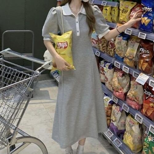 [엄지척]여성 롱원피스 카라배색 단아 셔링퍼프소매 여성스런_19909899_667501