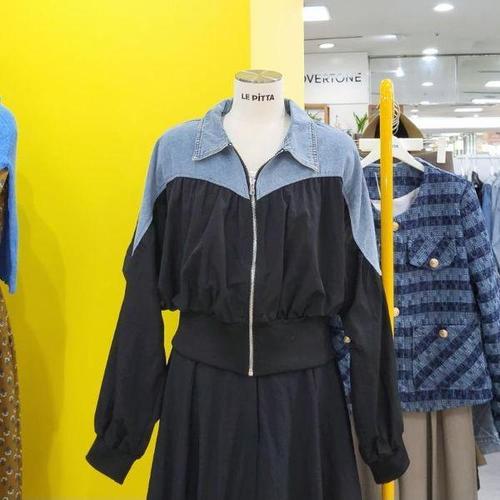 [르피타]DP01 데님배색 셔링 블루종 점퍼 L243UJP904