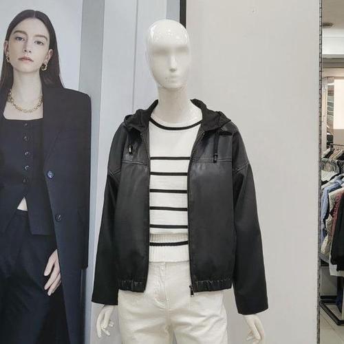 [마쟈]사이드 라인 페이크 레더 배색 블루종 점퍼_P411859291