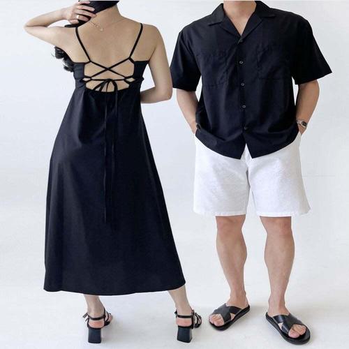 [셀럽하우스]백트임 RHSB9237 크로스 홀터 나시 블랙 롱원피스 비치드레스