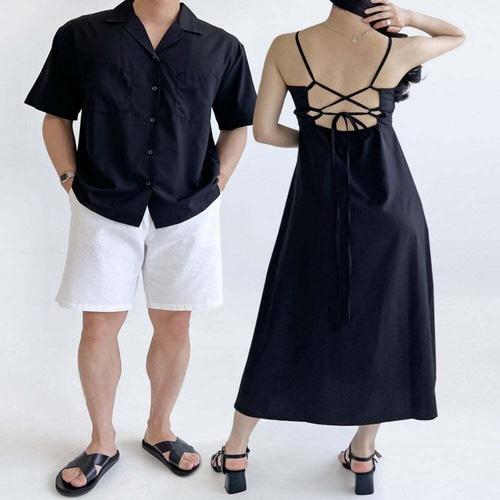 [셀럽하우스]GSS WHRW1572 DR200 백트임 크로스 홀터 나시 블랙 롱원피스