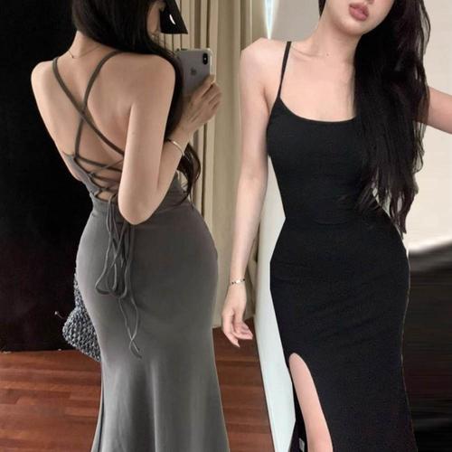 cammello 백리스 스트링 디테일 롱 원피스 뒤트임 원피스