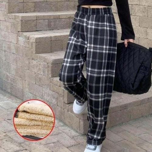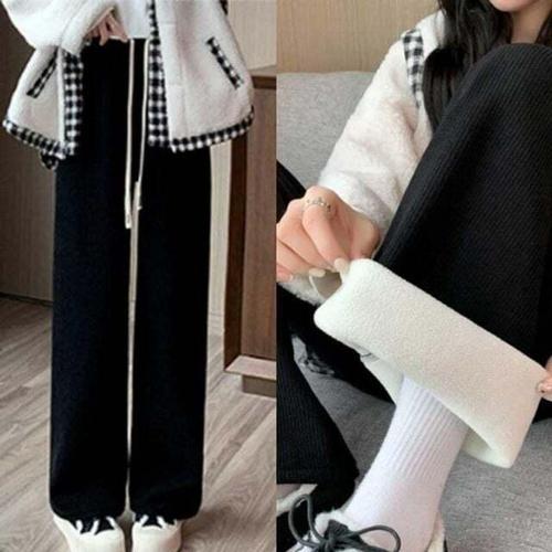 [셀럽하우스]여성 JJMG4539 방한 허리밴딩 스타일 통 넓은 편안한 골지 바지