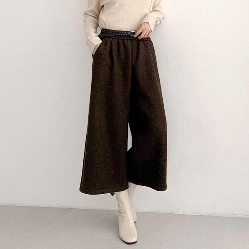 [다잇템][다잇템] 여자 핀턱 8부 FW 속밴딩 기모와이드 모직 바지_23853053_588872