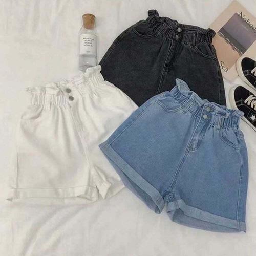 [셀럽하우스]A라인 NANK2144 스타일 하이웨이스트 여성 허리밴딩 데님반바지