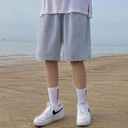 [JHQQ7P5V_4B]캐주얼 학생 데님반바지 여름 밴딩 끈 반바지