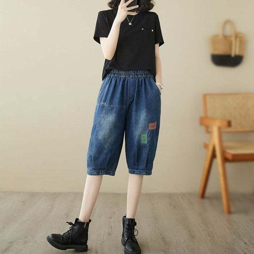 [셀럽하우스]하프 ETWL8245 5부 밴딩 진청 여자 편한 팬츠 데님 반바지