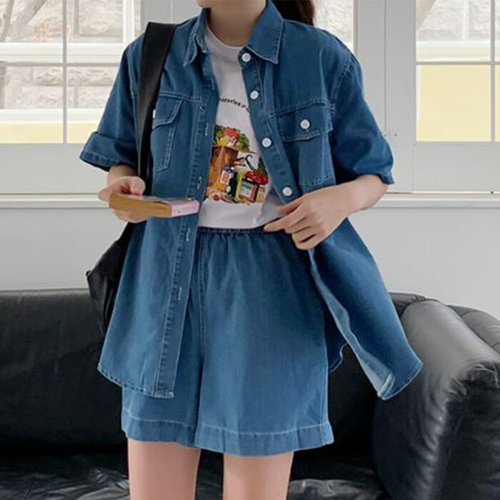 레이츄 / 쥬만지 반팔 셔츠+밴딩 반바지 데님 코디 세트