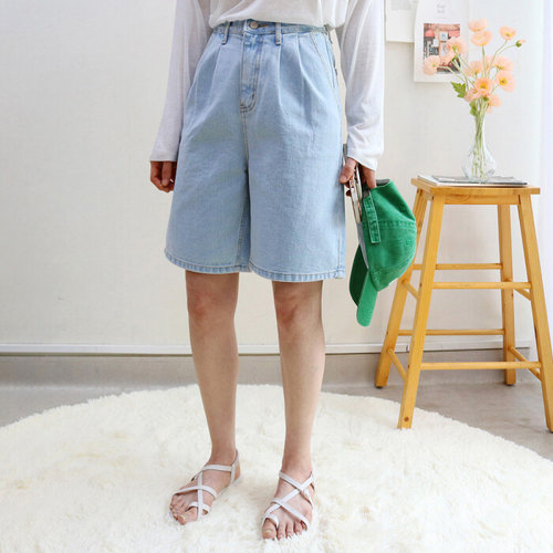 [라이니]밴딩 핀턱 데님 하프 반바지 bo-3223k