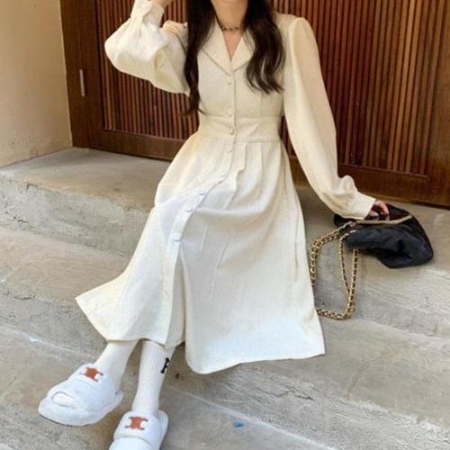 [엄지척]여자 골덴 롱원피스 허리 밴딩 카라 코듀로이 원피스_19913106_667501