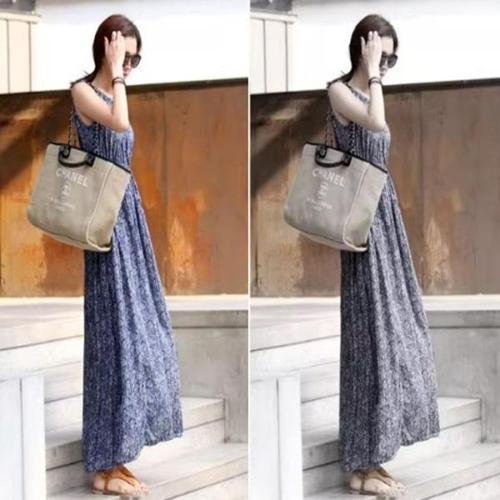 [엄지척]스모크밴딩 A라인 끈나시 롱원피스 여름 여행 원피스_19909868_667501