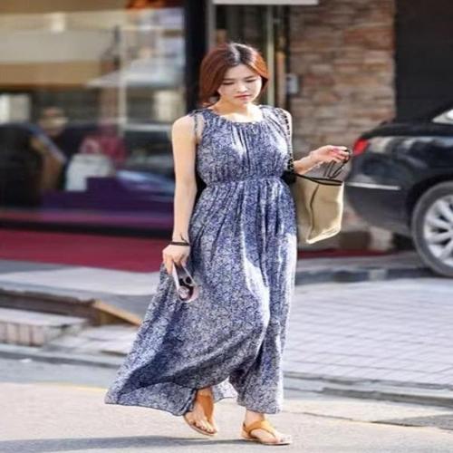 [엄지척]여성 리본 민소매 여름 주름원피스 롱원피스 허리밴딩_19913597_667501
