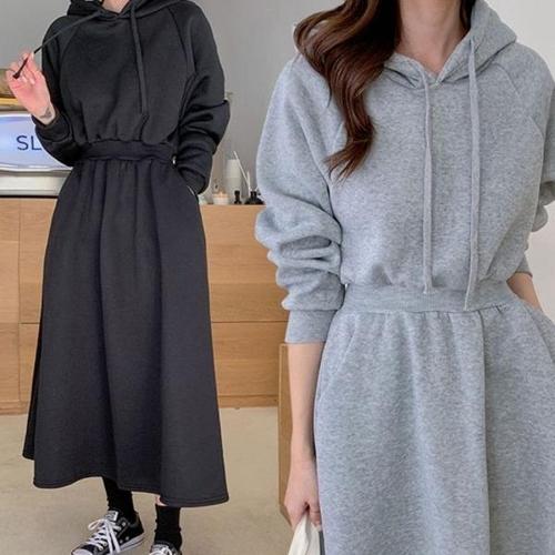 바이엘르 겨울 기모 후드 롱 원피스 빅사이즈