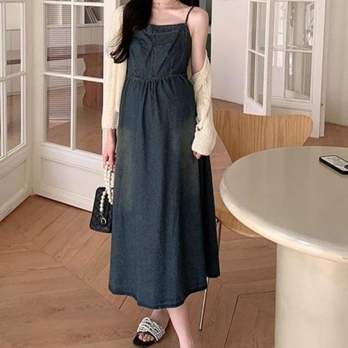 [엄지척]여자 딥컬러 데님 롱원피스 끈나시 스모크밴딩 원피스_19913284_667501