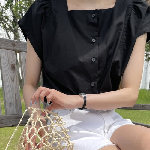 클루이가넷 / 투웨이 밴딩 숏 블라우스 여름 크롭 반팔 스퀘어넥 여성