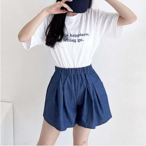 [셀럽하우스]여성 IHNW2548 여름 베이직 밴딩 숏 면 반바지 DHHA84 청반바지