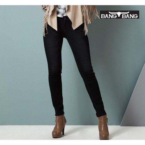 [뱅뱅][뱅뱅] 여성 라이크라 이중직 기모 데님 검정