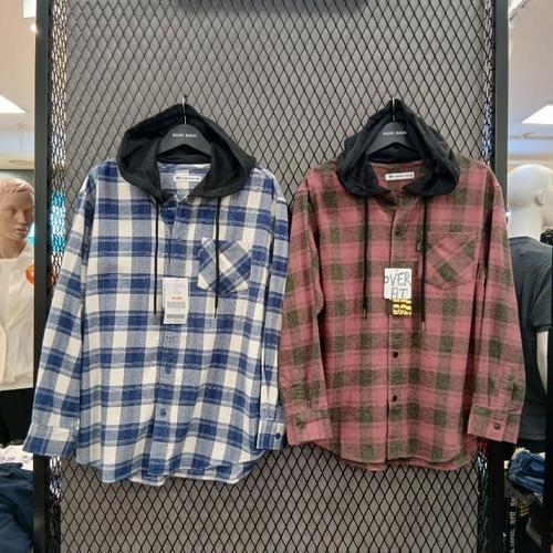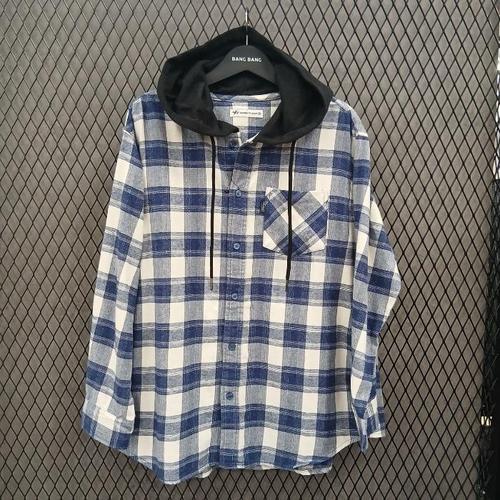 뱅뱅 HC09 공용 가을 체크무늬 후드셔츠남방 NSL638