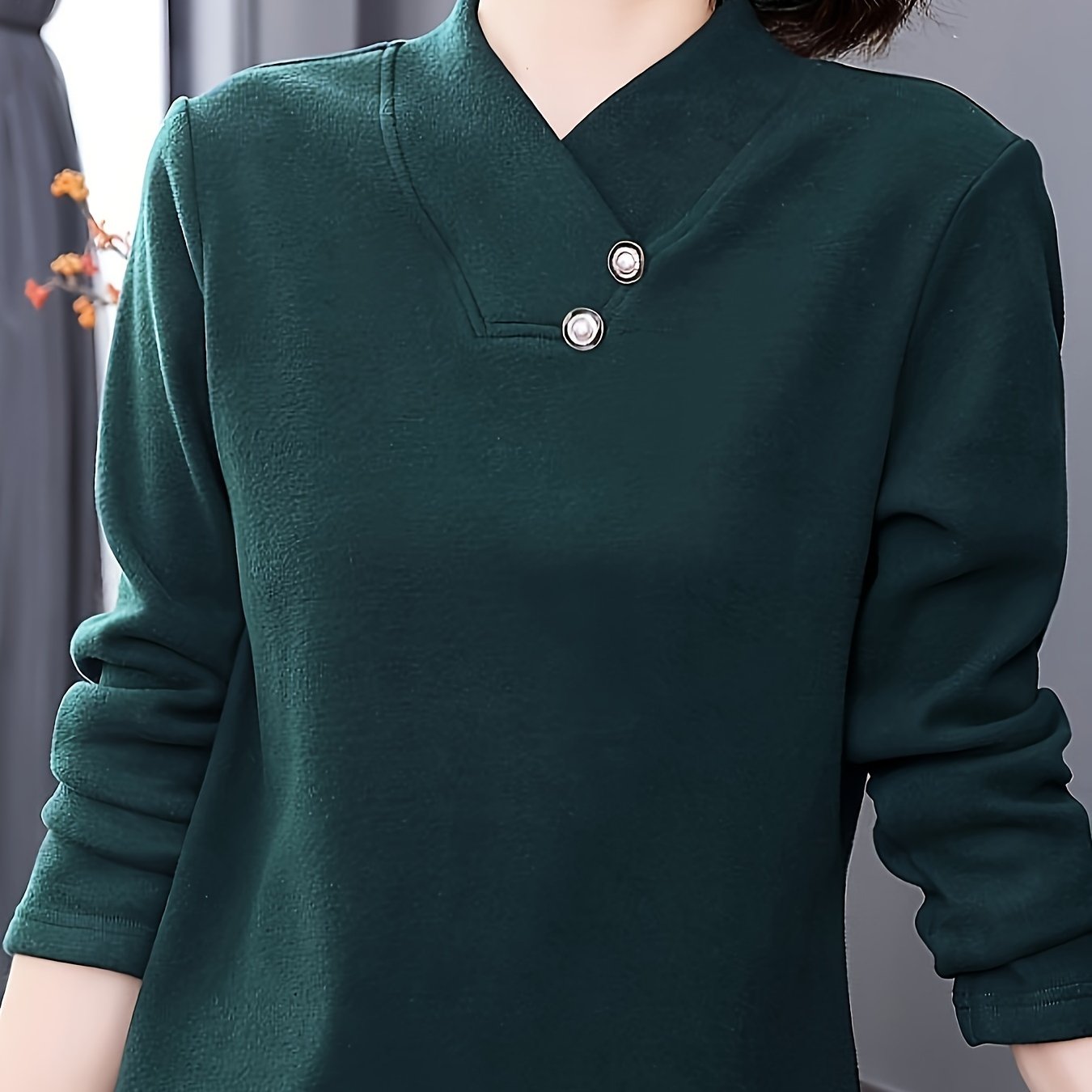 TEMU 여성용 우아한 긴팔 터틀넥 스웨터 - 다크 그린, 3버튼 프론트 플래킷, 두꺼운 따뜻한 원단, 대형 사이즈 가능, 세탁기 사용 가능, 가을 레이어링 필수품, 사무실 복장, 시대를 초월하는 디자인, 내구성 있는 구조, 버튼업 탑, 겨울 필수 아이템, 캐주얼 웨어, 클래식 스타일, 부드러운 질감, 스타일리시 옷장