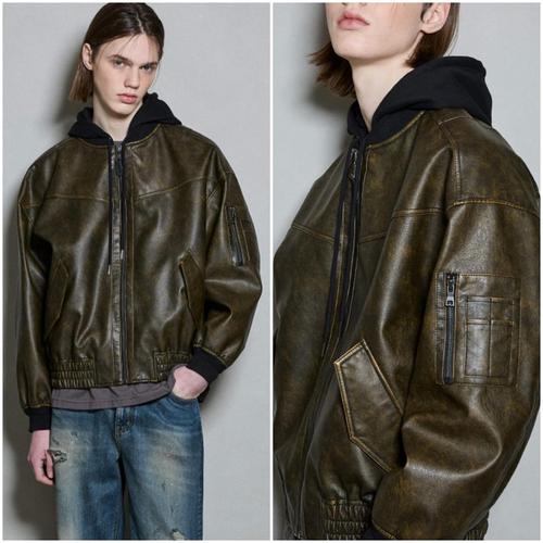 [버커루]인기 남성 인조가죽 탈착 항공 점퍼_US