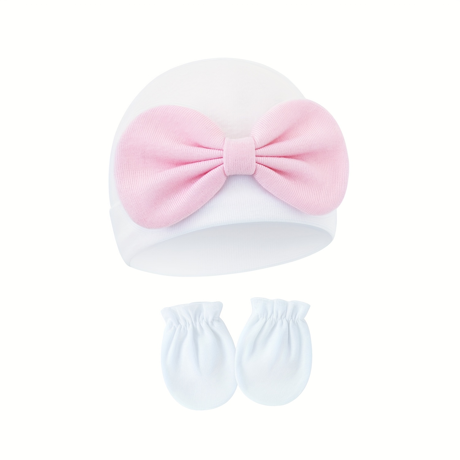 TEMU 신생아 리본 모자 & 스크래치 방지 장갑 세트 2pcs, 귀여운 베이비 헤드웨어 액세서리, 완벽한 선물