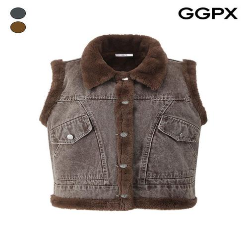 [GGPX] GQ1VT002F 퍼 트리밍 데님 베스트