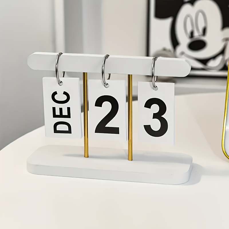 TEMU 1pc 노르딕 플립 캘린더 - 월간 및 일일 날짜 표시, 금색 액센트, 흰색 및 검은 디자인, 가정용 책상 장식, 사무실 또는 거실, 현대적인 미적, 세련된 날짜 홀더, 세련된 금속 액센트|캘린더|2025년달력