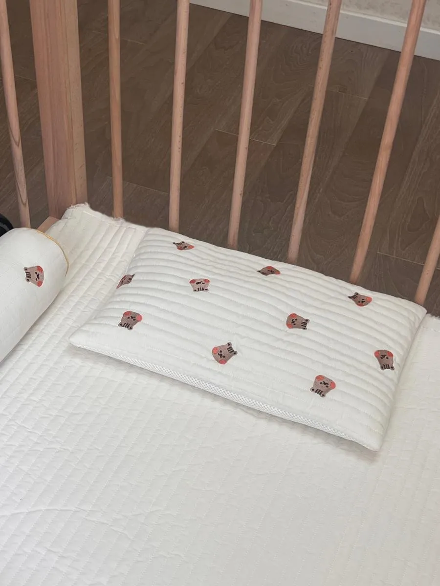 1 조각 아기 베개 아기 낮잠 베개 수 놓은 만화 동물 순수 면화 땀 흡수 통기성 신생아 부드러운 플랫 베개