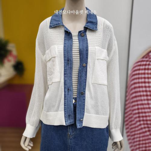 [베네통]베네통 UCB 데님 믹스 자수포켓 니트점퍼 BAJP52431 WH_DJ