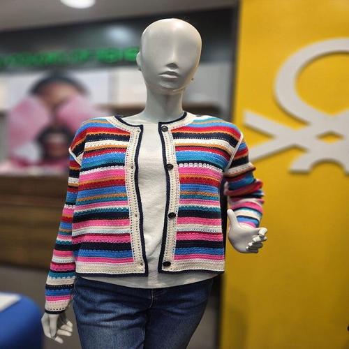 베네통 배색 자수 크로셰 니트 가디건 BAKC50531