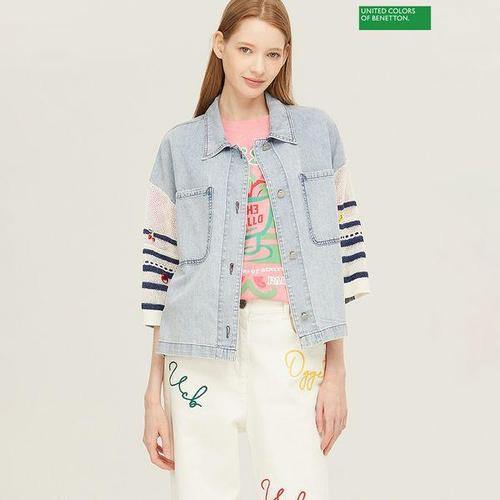 [베네통]니트 소매 데님 블라우스 BABLA2531