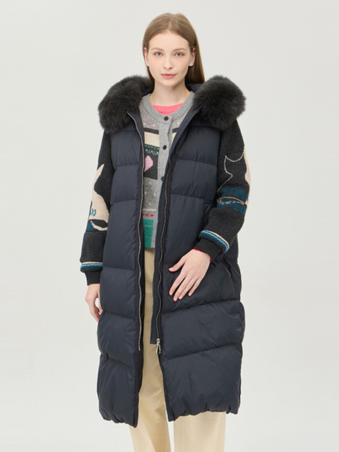 베네통 다이아 퀼팅 슬리브 덕다운 롱 패딩 BAPDG4461