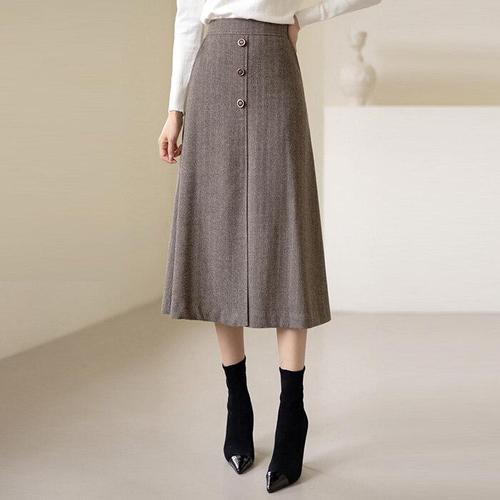 [스타일온미][스타일온미] 베디스 울 블렌딩 헤링본 L라인 롱 스커트