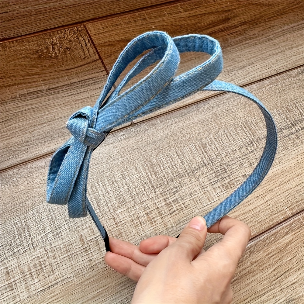 TEMU 1개 우아한 데님 리본 머리띠 - 블랙 & 블루 데님 옵션, 캐주얼 & 포멀 헤어스타일용 헤어 액세서리, 세련된 공예, 여성 패션|머리띠|데님원피스