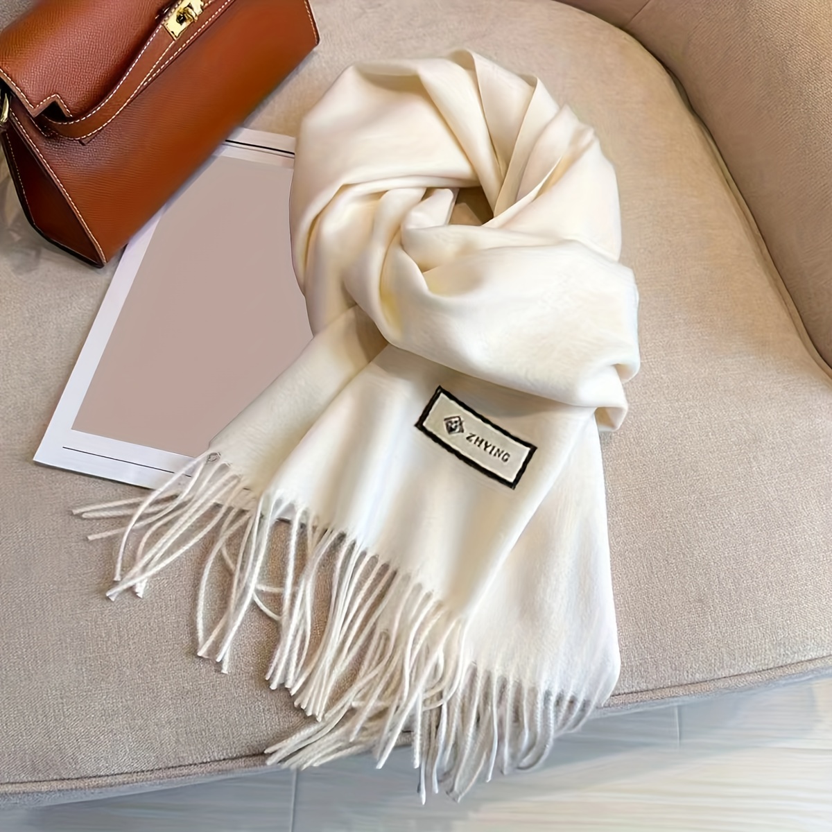 TEMU 우아한 단색 컬러 두껍게 된 인조 캐시미어 스카프 프린지 - 폴리에스테르 100% - 기계 세척 가능, 방풍 및 따뜻한 긴 숄 캐주얼 주말 착용 - 남녀 공용 스타일 스카프 (1개)