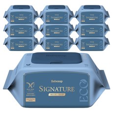 베베숲 시그니처 블루 에코 유아물티슈 캡형, 75g, 70매, 10개