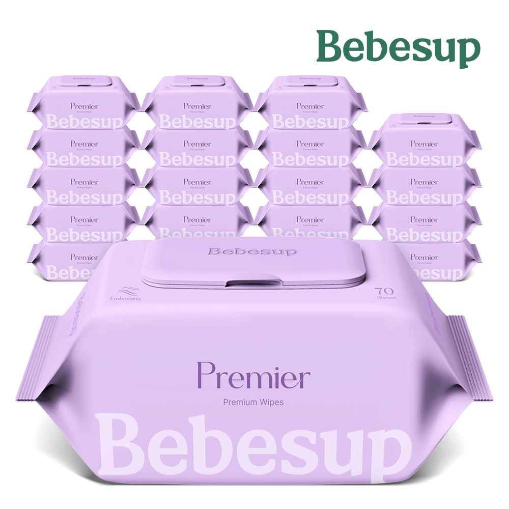 베베숲 프리미어 플러스 물티슈 캡형 70매 20팩 (1400매) 1BOX
