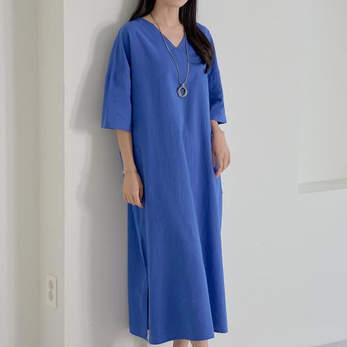 브이넥 린넨원피스