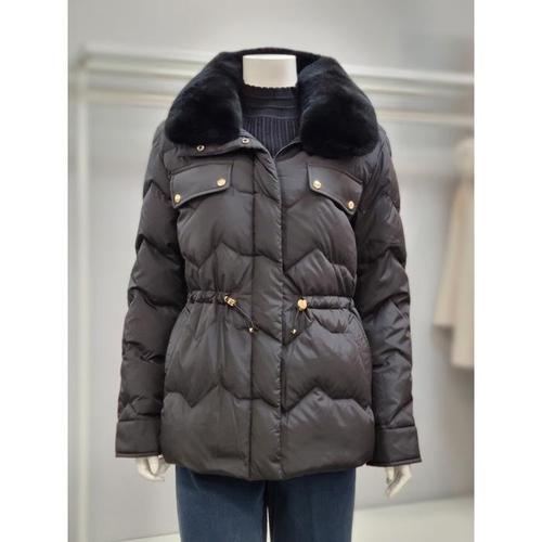 베스띠벨리 블랙 벨티드 퍼 덕다운 코트 BHHJY2691