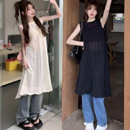 [에이치플러스몰]여성뒷트임 쉬어소재 짜임 레이어링 롱라인 스타일 베스트