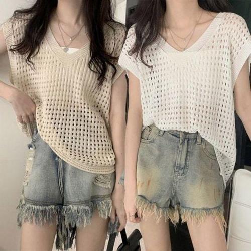 [에이치플러스몰]걸 이너구멍무늬 니트웨어 브이라인 모던 패딩베스트